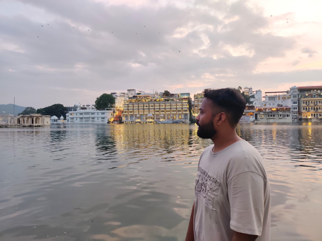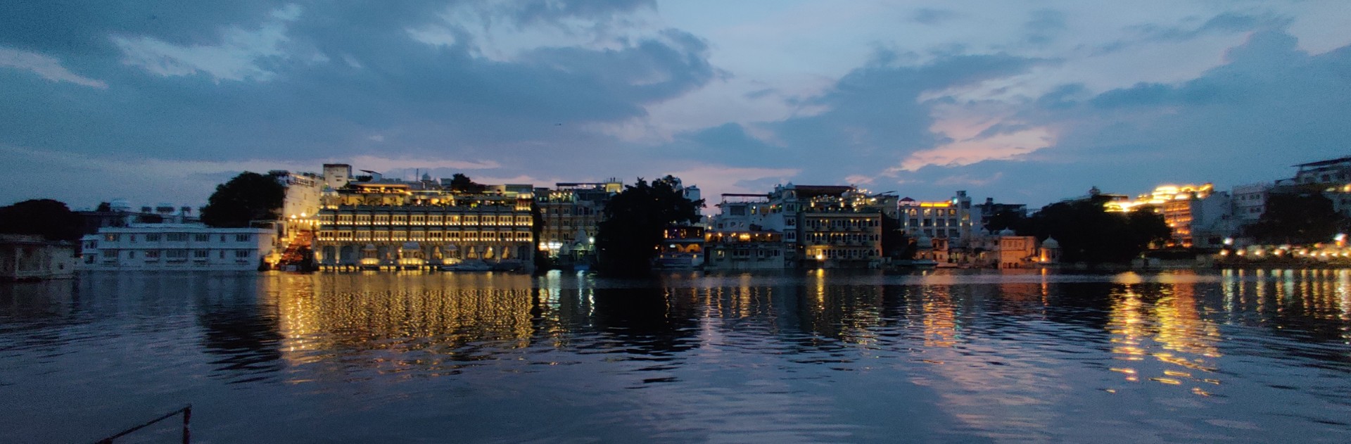 While reaching Udaipur, the landscape started to change into a verdant green hills. We reached our room booked from Airbnb, and the house owner, Sangeeta, showed us our delightful AC room with a sofa, 3 beds, a kitchen with a good amount of dining space. After being fresh, we went for an evening stroll around the city palace to Bagore ki Haveli beside Pichola lake.
